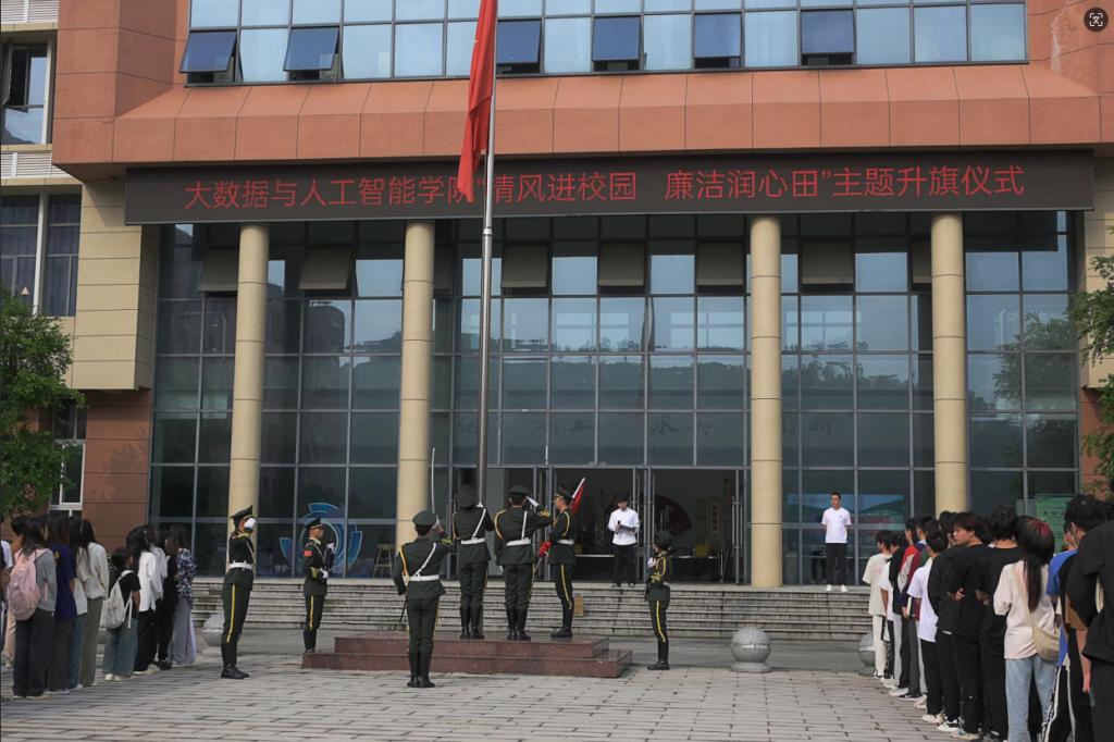 5月27日早晨8点,大数据与人工智能学院在思源广场举行“清风进校园,廉洁润心田”升旗仪式。由学院全体辅导员及全体学生参加活动。