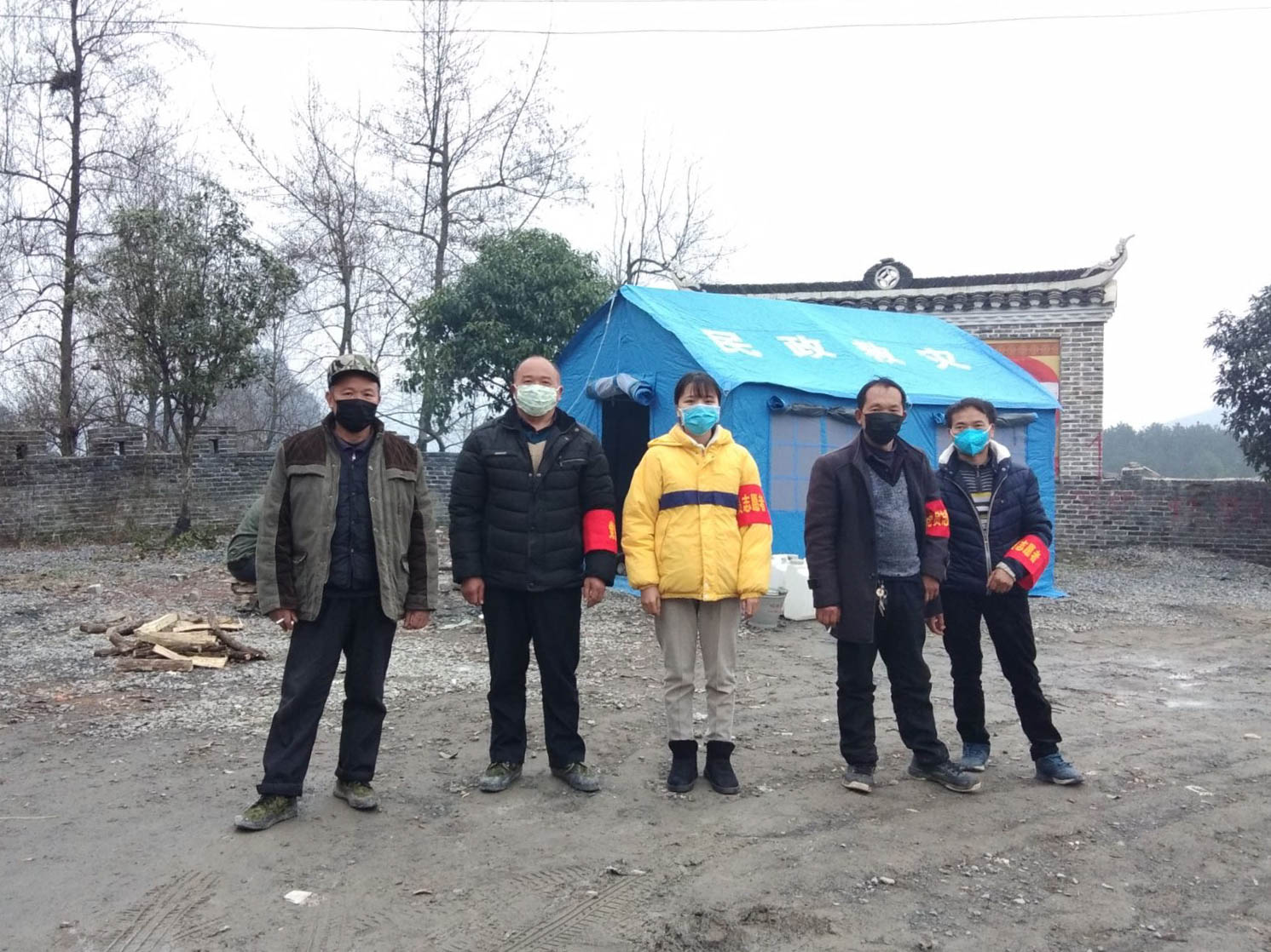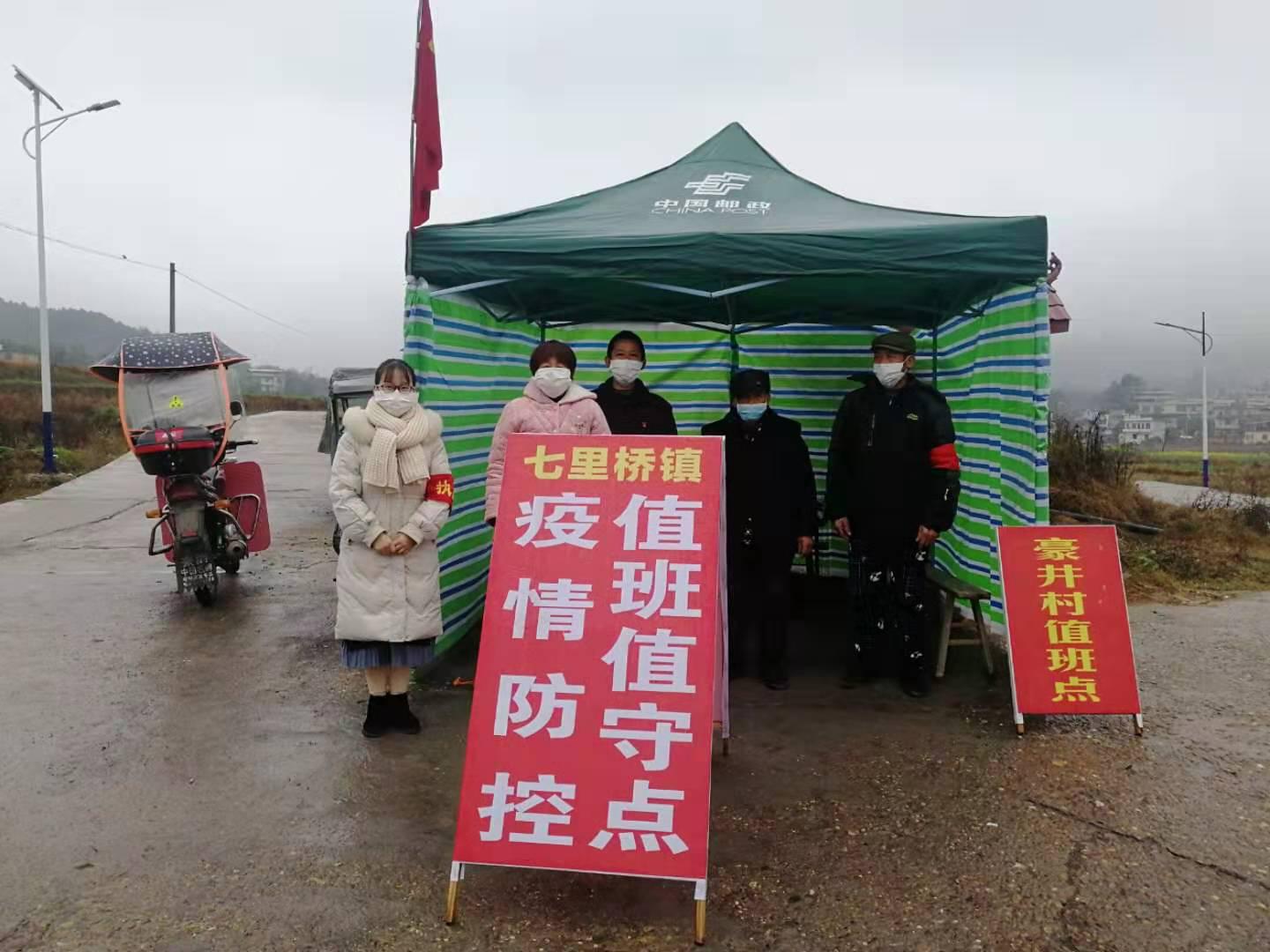 在值守点工作的文诗(右一)