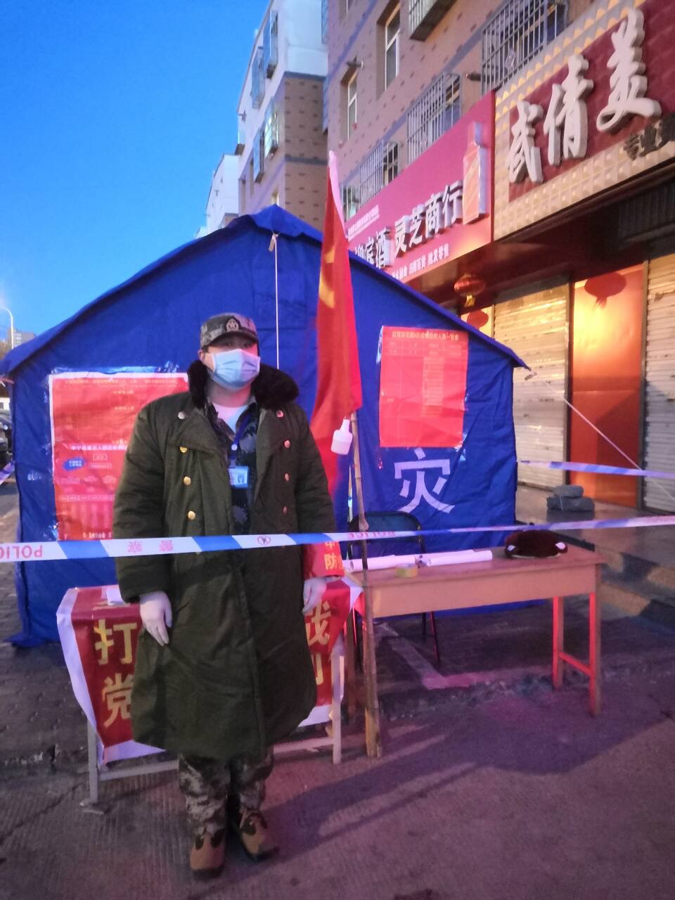电气3171班的王川同为退役军人。2月5日清晨,还在睡梦中的他被电话铃声惊醒,“我是县武装部此次防疫控制负责人,现紧急召回退伍人员,请你做好准备,随时出发赶赴防疫一线”。疫情就是命令,听到消息的王川从床上一跃而起,立马收拾物品,赶往集合地点,接受完任务才打电话给家人报平安。当听说宾馆隔离区需要人手时,王川立即主动请缨前去工作,他同医护人员一起,对隔离人员和外来人员进行房间消毒、体温检测、食物发放、物资采购……在宁夏中卫零下七、八度的天气下,有时候一桶泡面,一瓶矿泉水就是一天的物资,但他始终坚守在防疫一线。
