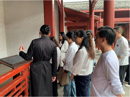 在解说员的解说下,历经风雨洗礼的岳阳楼让大家深刻体会到了历史的沧桑巨变,范仲淹的《岳阳楼记》反映的“先天下之忧而忧,后天下之乐而乐”的忧国忧民忧乐精神和“两袖清风”的廉政观让大家再次体会到中华文化的博大精深。当看到历代文人赞扬范仲淹的忧乐精神和廉政观的文言诗句时,大家亲身感悟忧乐精神的丰富内涵,被历经几千年不断的中华文化所蕴含的顽强的生命力所折服。