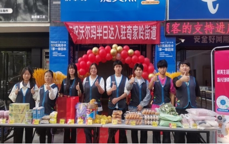 ▲市场营销专业学生在奇家岭街道参加沃尔玛商品线下营销实战