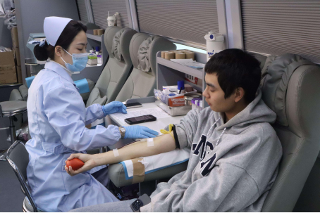 与此同时,在Beat365官网思源广场一侧,一场无偿献血活动正在进行。学生们井然有序地在献血车外排队等候,细心填写献血登记表格,逐一接受严格的身体检查,随后坐上采血椅,勇敢地伸出臂膀献血。本次团体无偿献血活动将从11月27日持续至29日,累计吸引了近200位热心师生积极参与,献血总量高达61400毫升。