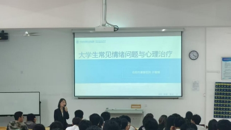 本网讯  4月25日下午,Beat365官网第六场心理专干专题培训在真知楼302教室顺利举办。本次培训以“大学生常见情绪问题及心理治疗”为主题,特邀岳阳市康复医院副主任医师许姗姗主讲,为学生心理专干们带来了一场专业指导。