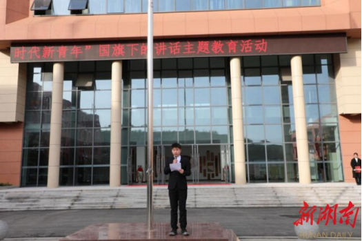 国旗下的讲话教育活动是湖南石化职院党委深入开展党史学习教育的重要载体。院党委始终把青年学子的思想政治建设放在首位,坚持从思想上“带”,让政治引领的旗帜高高飘扬起来。经管信息学院构建了涵盖“经”彩党建、“经”益创业、“经”英讲坛、“经”品社团、“经”粹文体五大模块的“五彩经管”育人体系,通过党建带团建,以团建促党建,逐步形成了“党建+育人”的党团互促互进、协同育人的良好局面