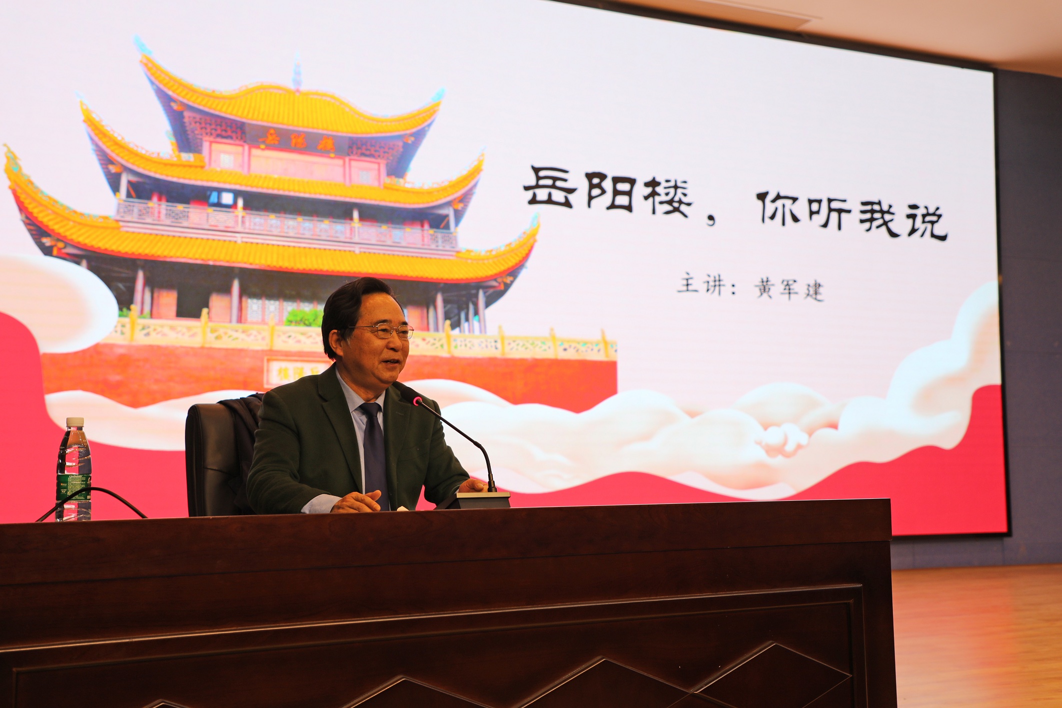 讲座现场,黄军建教授以幽默诙谐的语言、贴近生活的案例,将岳阳这座城市的历史文化底蕴、民俗风情、地域特色、《岳阳楼记》折射出的古仁人思想以及岳阳忧乐精神内涵等个人见解向我们娓娓道来。讲座过程中,年逾古稀的黄军建教授始终神采奕奕、声如洪钟,引经据典信手拈来,展现出了丰富的生活积累和深厚的文史功底。讲座结束后,现场观众还意犹未尽地提问交流,黄教授耐心地解答现场观众的提问,热烈的互动交流将现场氛围推向了高潮。