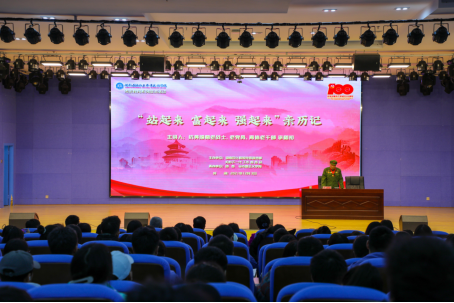本次宣讲活动特别邀请抗美援朝老战士、老党员李和初同志以《“站起来,富起来,强起来”亲历记》为题进行爱国主义教育讲座。一个小时的讲座,九十岁高龄的李和初同志全程站着讲述,为观众铺陈了一幅个人奋斗史与国家发展史交织的壮阔画卷,并与青年学子积极互动,现场观众数次起立鼓掌,表达对李老的敬意。
