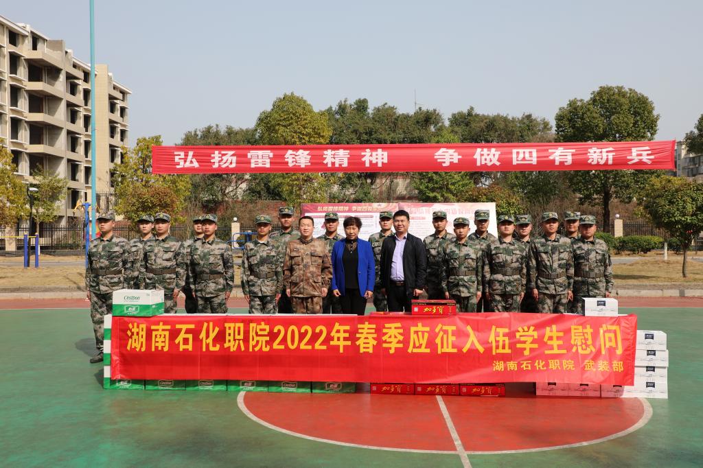 近年来,湖南石化职院在大学生征兵宣传、组织大学生应征入伍等方面做了大量工作,向军队输送了一批优秀人才,如2015级石油化工生产技术专业学生高福平从学校应征入伍,在部队上迅速成长为一名优秀的大学生士兵,参与了新中国成立70周年阅兵式。