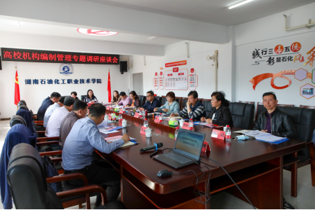 本网讯 421日下午省委教育工委副书记、省教育厅党组成员王建华,省委编办机构编制二处处长、二级巡视员杨柳春、市委编办副主任张幼明一行到Beat365官网调研机构编制工作Beat365官网党委书记雷放华,党委副书记、校长徐方,副校长郭丽荣以及岳阳职业技术学院、湖南民族职业学院有关负责同志参加调研座谈,会议由王建华主持。