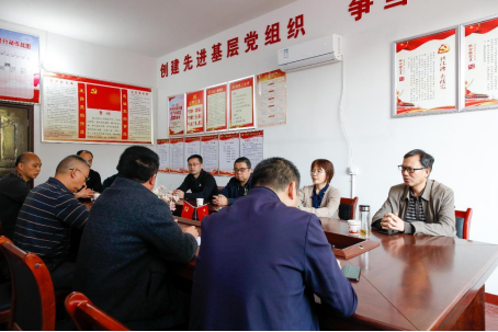 ▲学校领导与村干部及驻村工作队员进行了座谈
