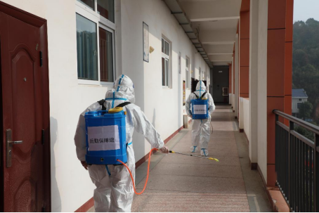 ▲后勤保障组开展环境消杀