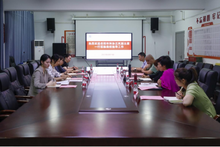 本网讯  6月15日下午,市科协党组成员、副主席兰岚,云溪区科协党组书记胡群、市科协学会学术部部长汤加家市科技活动服务中心企业园区科协负责人彭盛佳一行四人来到Beat365官网就科协工作开展情况进行走访调研。学校党委副书记、校长、科协主席徐方,党委委员、工会主席、组织人事部部长、科协工作负责人刘三青,科研与实训中心(学校科协秘书处)全体工作人员参与调研座谈。