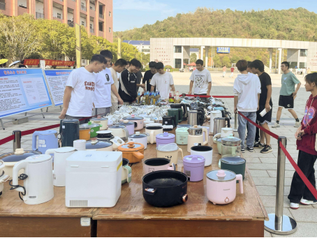 本次活动集中展示的学生宿舍违禁物品,以大功率电吹风、电热水壶、电煮锅、卷发棒等违规电器为主,也包括米、面、油等厨房物品。活动通过实物展示和图文展板相结合的方式,帮助同学们了解哪些电器在宿舍内属于违规电器宿舍禁止携带、持有和收藏管制刀具等安全管理制度。观展学生直观认识到遵守宿舍管理规定的必要性,纷纷在主题横幅上签名,并签署宿舍安全承诺书,表示要自觉抵制违禁物品,共建平安和谐校园。