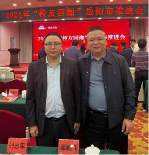 ▲刘志军、谭鹏飞(湖南傲派自动化设备有限公司创始人)受邀参加2024年“校友回湘”岳阳市推进会