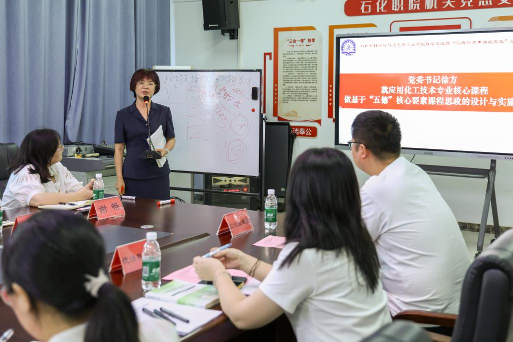 石化材料学院各教研室和马克思主义学院各教研室一对一签署“五德并育・课程思政”结对共建协议》,标志着石化材料学院与马克思主义学院在促进专业与思政融合发展上迈出了实质性步伐,开启了协同育人的新篇章。石化材料学院院长陈卓对共建内容进行深入解读未来两院将围绕学校“五德并育”(即政治品德、职业道德、社会公德、家庭美德、人文雅德)的思政教育品牌理念,在专业建设、课程思政元素挖掘、团队建设、思政实践活动开展等方面开展深度合作