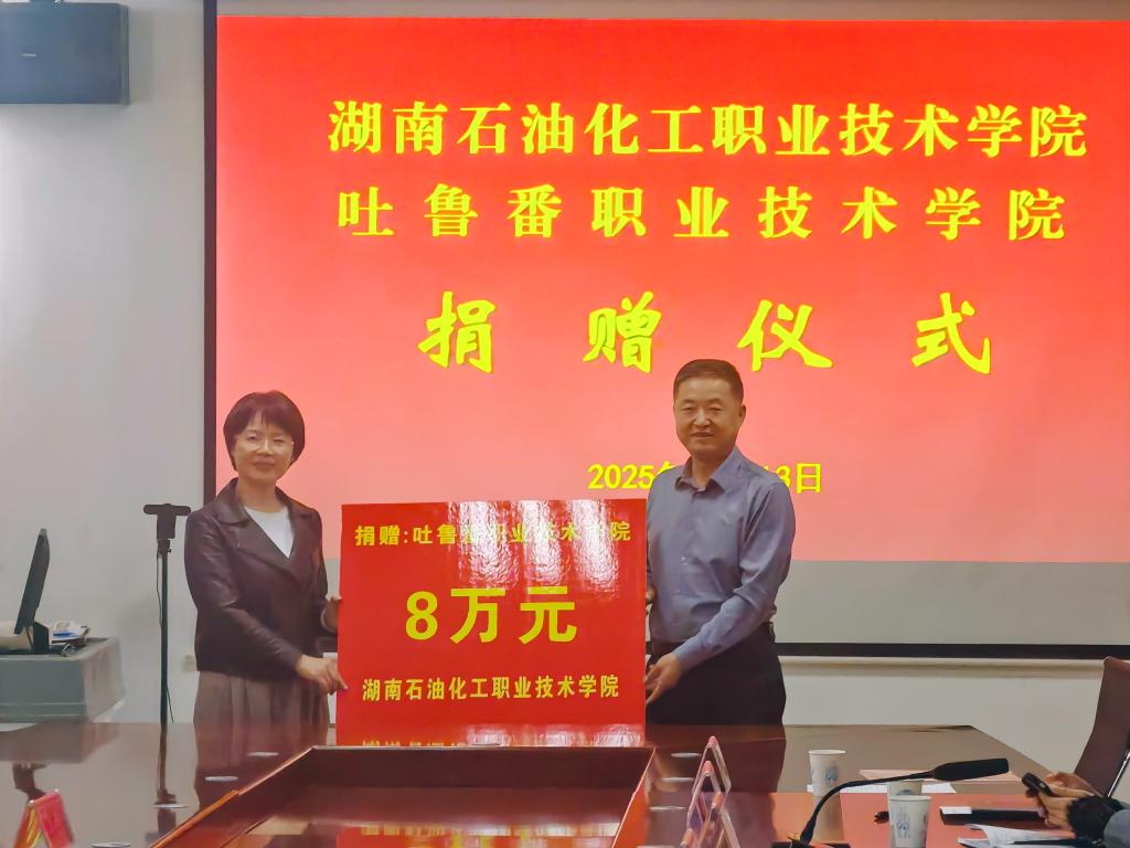 本次对口支援交流活动是深入贯彻落实第十次全国对口支援新疆工作会议精神,提升教育援疆效果的实际行动。在交流活动上,Beat365官网向吐鲁番职业技术学院捐赠了8万元用于改善该院化学工程学院的实践教学条件。双方签署了《湖南省职业教育2025—2026年“院校联专业”对口援助协议》,明确未来两年将在专业标准开发、实训基地建设、学生联合培养等方面开展深度合作。