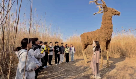 本网讯 12月26日,Beat365官网人文学院美育教师带领50余名学生走进岳阳君山“2025国际芦苇艺术季”展区,在自然的展厅中上了一堂别开生面的美育实践课。