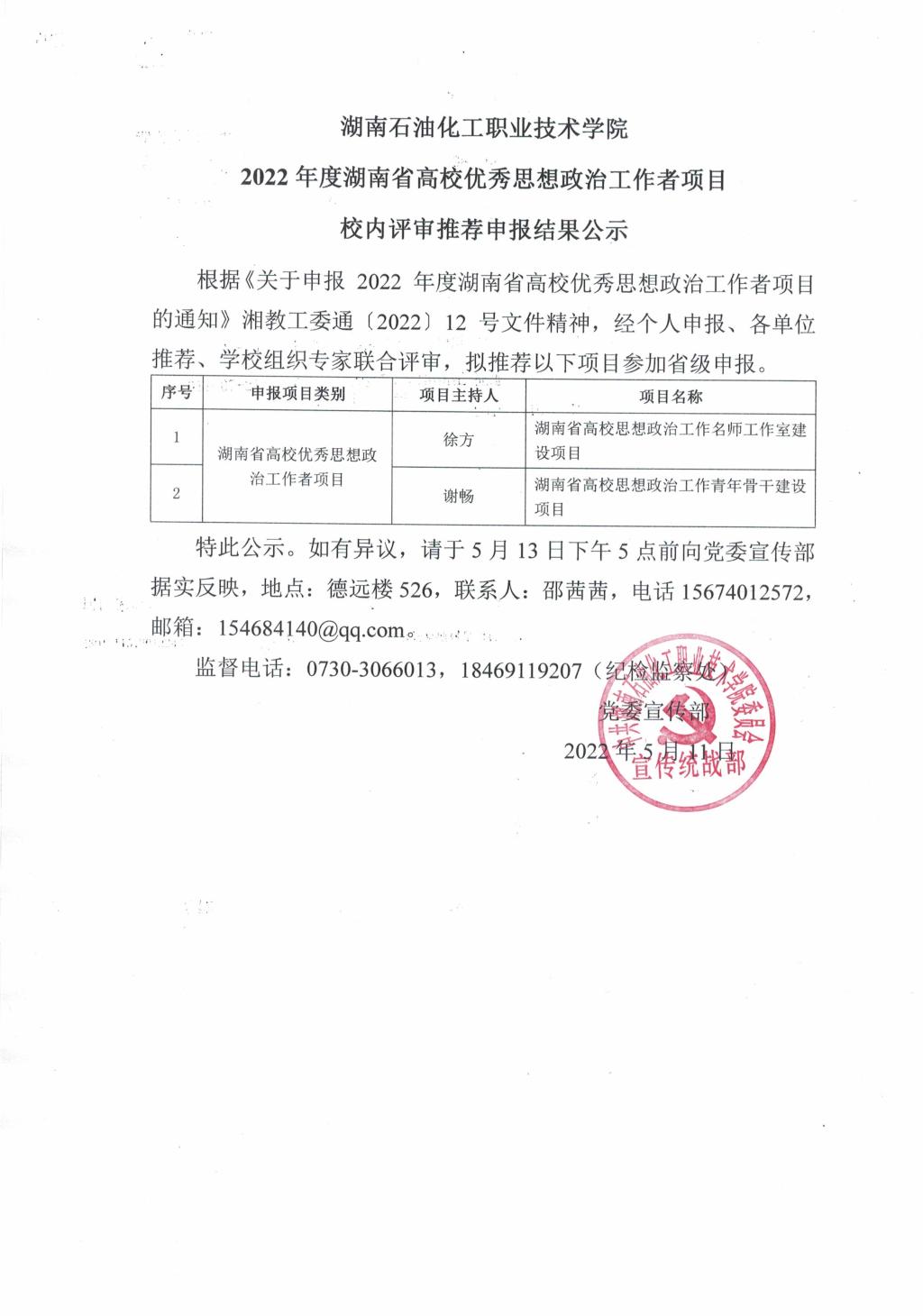 Beat365中文官方网站 2022年湖南省高校优秀思想政治工作者项目校内评审推荐申报结果公示