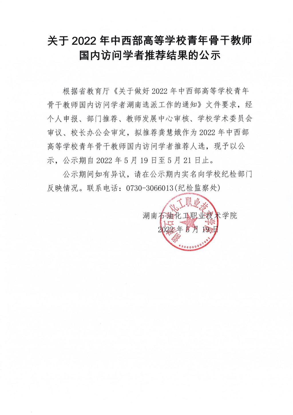 关于2022年中西部高等学校青年骨干教师国内访问学者推荐结果的公示