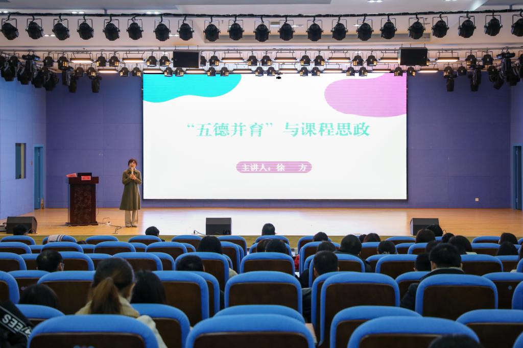 培训会上,党委副书记徐方以《“五德并育”与课程思政》为题作专题讲座。首先,徐书记就“立德树人”之“德”的基本内涵、高职学生“五德”要素模型、基于“五德”要素的德育课程体系设计三个方面进行了详细讲解。随后,她以思政元素融入专业教学体系为主线、课程思政实施案例为示范、课程思政相关文件为纲要,全面诠释课程思政的开展方式。