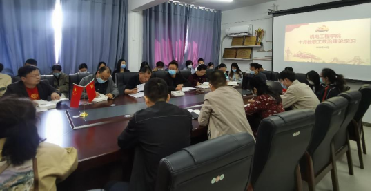(通讯员 于吉鹏 何飞红 )根据学校党委宣传部《关于组织开展好2022年10月教职工政治理论学习的通知》通知要求,10月14日,机电工程学院党总支在德远楼534组织召开了全体教师的政治理论集体学习。