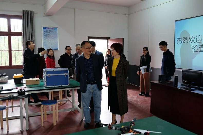 学院院长徐方陪同省教育厅创新创业检查组成员参观指导无人机实训室,并对依托该专业技术优势开展创新创业工作提出指导性意见。