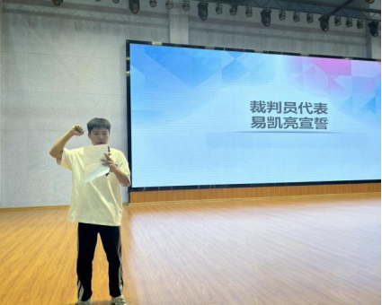 随后田望雄同学、易凯亮同学分别代表全体运动员、全体裁判员宣誓,彰显比赛的庄重与严谨。