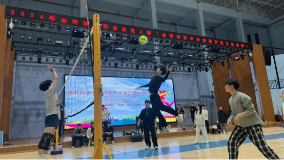 在比赛场上,运动员以矫健的身姿挥起健壮的臂膀,奋力将球发出一条优美的弧线。在双方激烈的交锋中,运动员们给大家呈现出一次次的“起球”“传球”和“漂亮的扣杀球”。