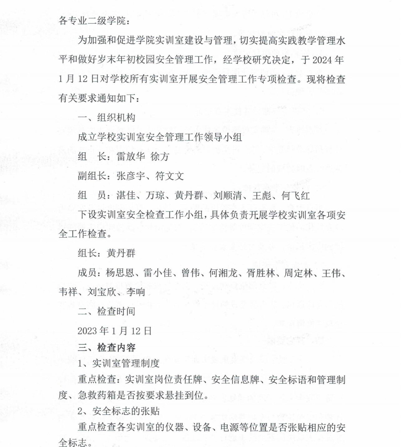 关于开展2023年末实训室安全管理工作专项检查的通知