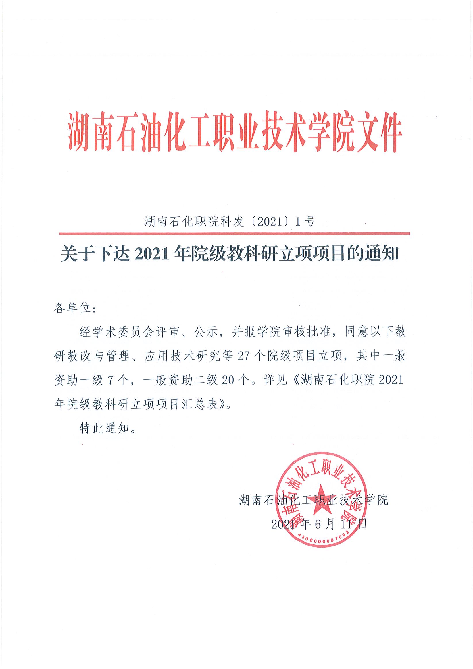 关于下达2021年院级教科研立项项目的通知
