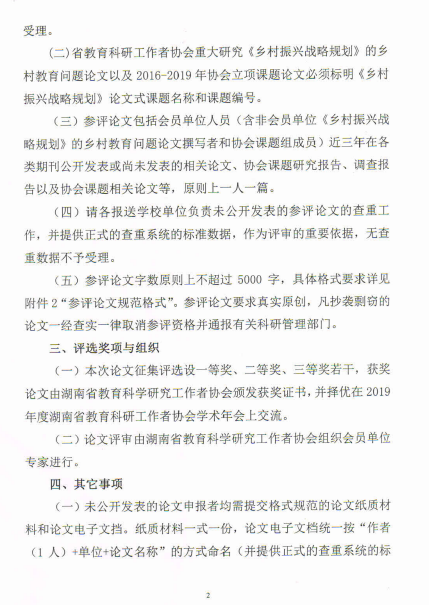 转发关于举办2019年湖南省教育科学研究工作者协会 优秀论文征集评选活动的通知
