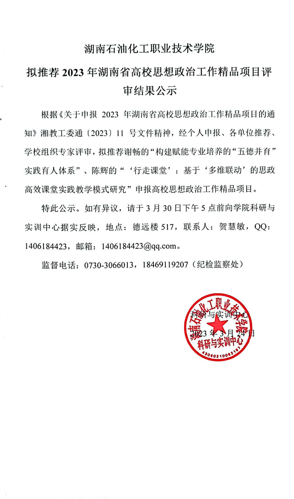 Beat365中文官方网站拟推荐2023年湖南省高校思想政治工作精品项目评审结果公示