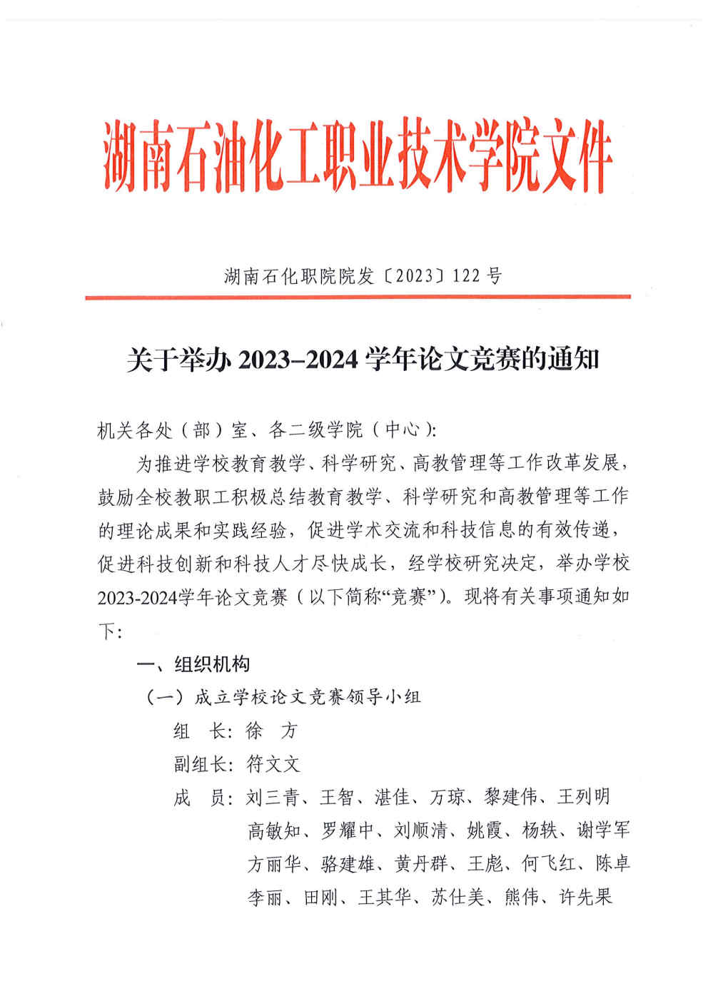湖南石化职院院发〔2023〕122号 关于举办2023-2024学年论文竞赛的通知(1).pdf