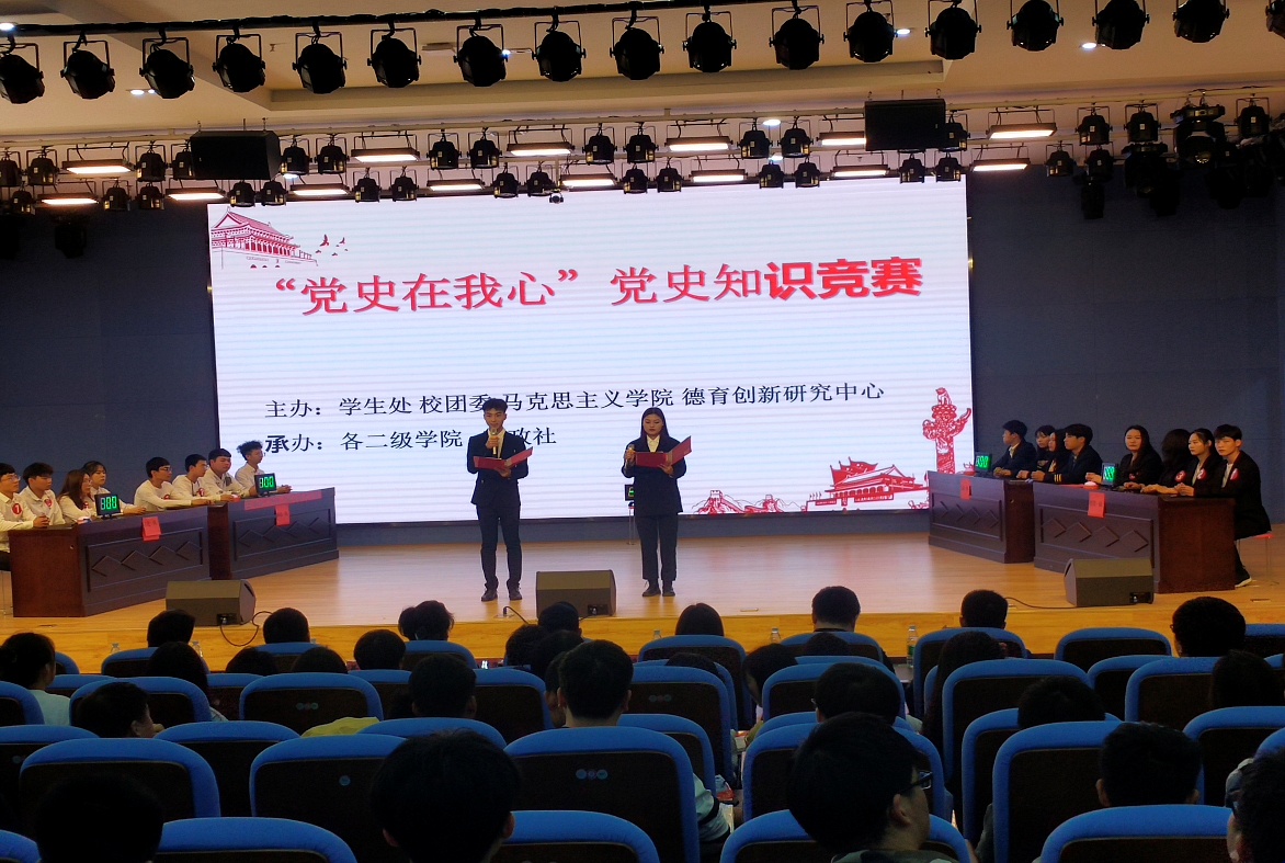 比赛内容紧紧围绕着“中共党史”“党章党规”等相关知识展开,题型多样,内容丰富。比赛环节设置为““牛刀小试”(必答题)”、“无敌智多星(抢答题)”、“谁与争锋(选答题)”和“合力推进(观众题)”四个部分。在比赛现场,选手们踊跃答题,你追我赶,尤其在抢答环节中,选手们紧握抢答器,争分夺秒,不甘示弱,精彩的比赛不时引来阵阵掌声。经过激烈的角逐,来自石化一队、机电二队获得一等奖,经管一队、石化二队获得二等奖,人文一队、经管二队、机电一队获得三等奖。