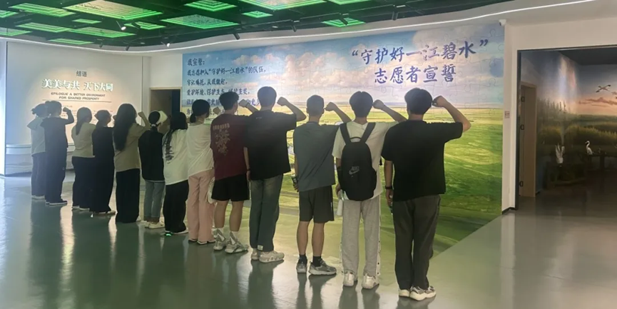 参观的最后,我们进行了“守护好一江碧水”志愿者宣誓和按手印仪式。每一位成员在宣誓墙上郑重按下手印,表明我们愿意为保护长江生态环境贡献自己的力量。
