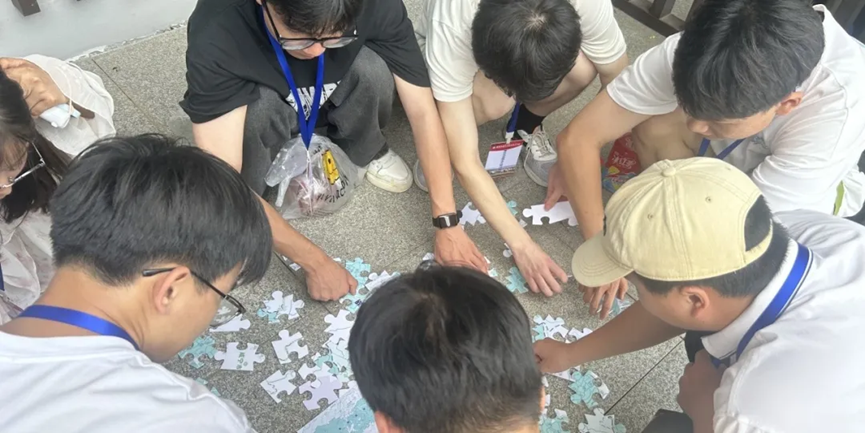 参观结束后,我们在展陈馆外活动室内开展拼图活动,小组成员共同完成了“守护好一江碧水”这幅象征环保主题的拼图作品。在拼图过程中,我们提高动手能力和耐心,也增强了团队合作精神和凝聚力。