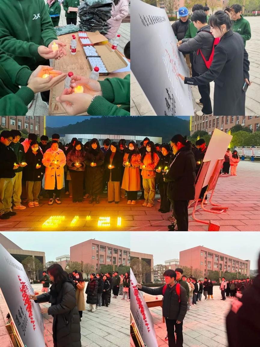 在场的师生手贴千纸鹤、手捧蜡烛为南京大屠杀死难者默哀,为中国献祝福。同学们在活动中触摸鲜活历史,感悟珍贵和平,纷纷表示要初心不忘国耻,矢志追梦未来。