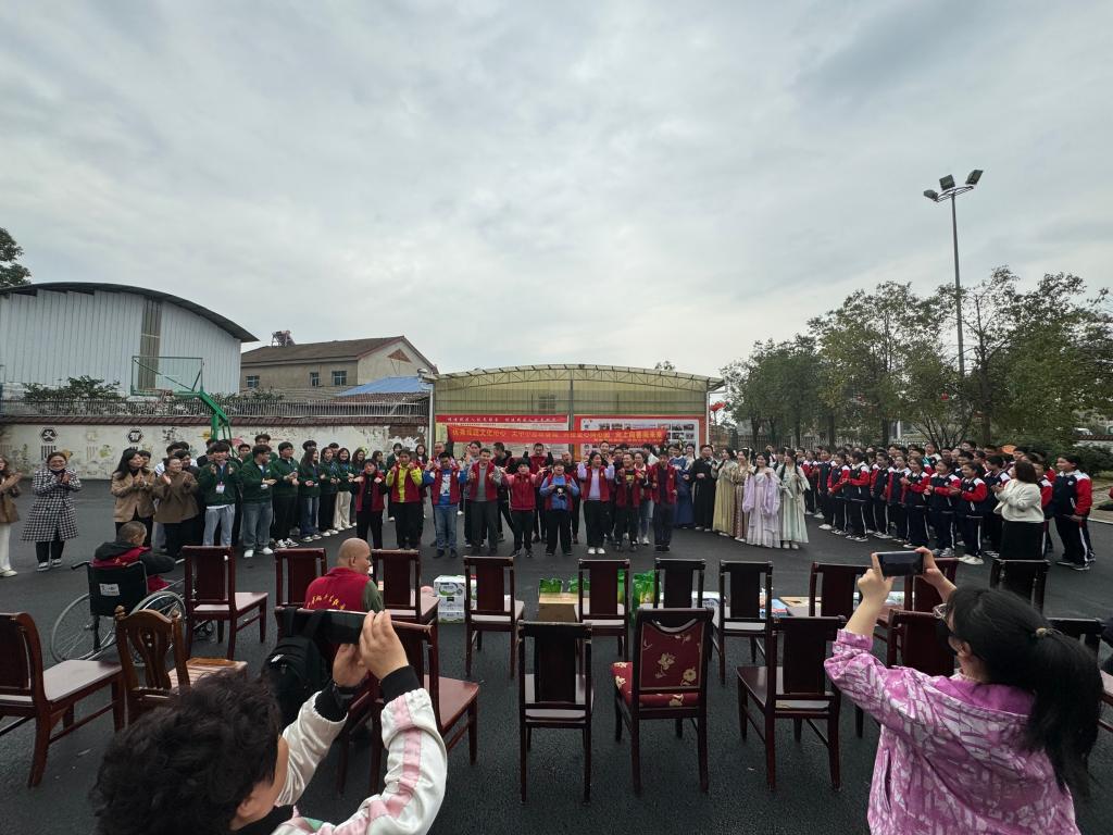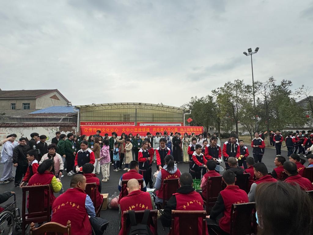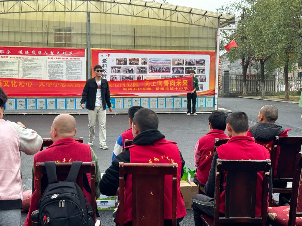 3月22日下午,湖南石油化工职业学院校团委、马克思主义学院全体教师、青年马克思主义研习社、武道社、汉服社以及岳阳市第十中学2315班全体师生及家长代表100多人,带着生活用品、学习用品等礼物,前往岳阳市德馨助残服务中心,开展“扶弱助残献爱心、弘扬中华优秀传统文化”大中小学思政教育一体化建设实践活动,为传统文化的传承、助残事业、志愿服务的发展以及思政教育的创新贡献一份力量。