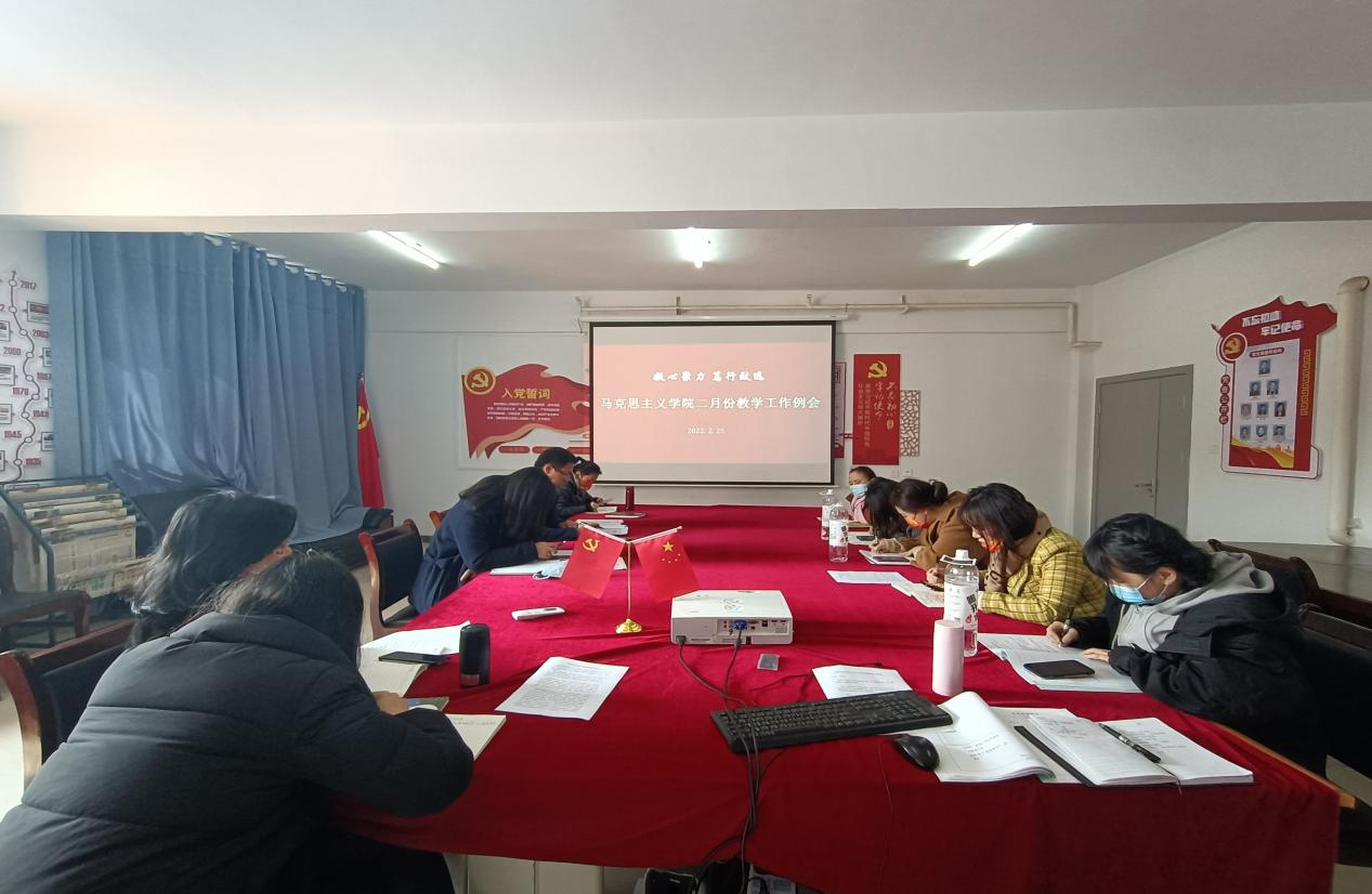 2月25日下午三点,马克思主义学院(以下简称马院)在德远楼624会议室召开2022年2月份教学工作例会,会议由马院党支部副书记陈辉主持,马院院长姚霞及全体教师参加。