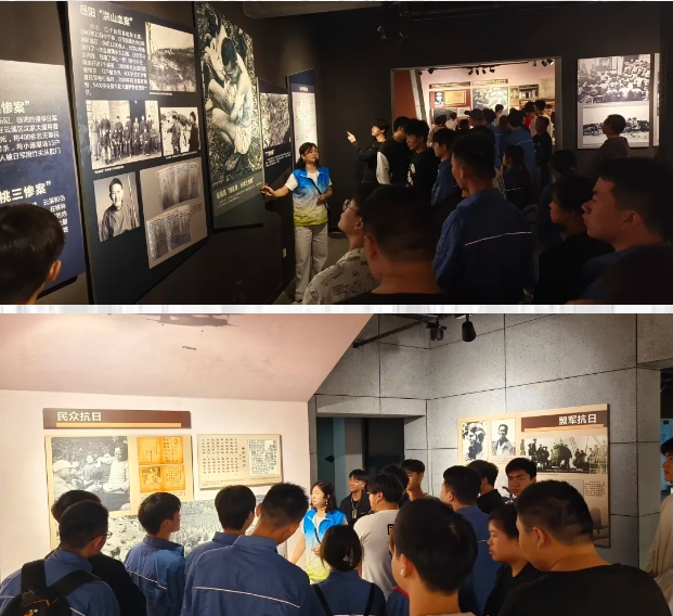 学生们一边认真聆听工作人员的精彩解说,一边观看大量的资料、真实而悲壮的历史照片以及珍贵的革命文献。跟随工作人员一路参观,同学们的心无不为之震撼,在日军侵略中国,肆意施展暴行时,无数的革命先辈抛头颅洒热血,解放人民于水火之中。