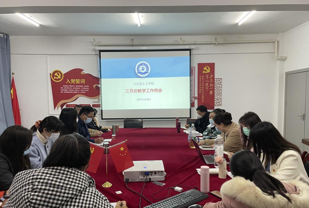 3月25日下午,马克思主义学院在德远楼624室召开教学工作例会。会议由党支部副书记陈辉主持,院长姚霞及全体教师参加。