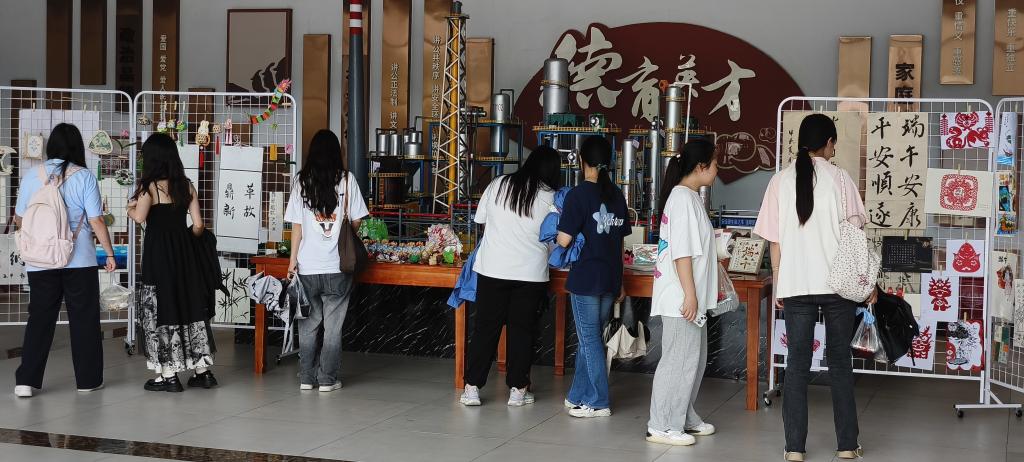 为开展好中华优秀传统文化教育,推动思政课建设内涵式发展,提升学生文化艺术修养与文化底蕴,增强文化自信,马克思主义学院于5月-6月开展了以“文化润心•青春启航”为主题的多彩民俗扬中华优秀传统文化实践活动。学生通过了解不同民俗及其文化背景,开展传统书法、绘画、编织、刺绣、窗花、舞蹈、雕刻、戏剧、香包等文化作品创作,在艺术创作中感受中华优秀传统文化的魅力。经过学生制作、班级初评、学院复评等环节,评选出优秀作品在校内展出。作品展分为“剪映流光”“书画传情”“手造启思”三部分,引导学生发挥所长,运用不同艺术媒介传送生活态度,深刻感悟中华优秀传统文化内涵和习俗魅力。