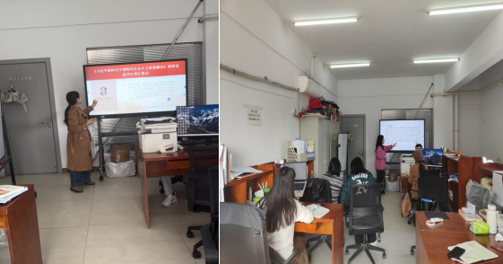 在读书分享环节,唐桂英老师带来《〈实践论〉〈 矛盾论 〉 导读》分享,带领大家重温经典著作的思想精髓,深入解读马克思主义认识论与辩证法的核心内涵,谭杨老师则以马克思《关于费尔巴哈的提纲》为核心进行学习导读,聚焦著作中 “实践是检验真理的唯一标准” 等重要观点,进行分享。