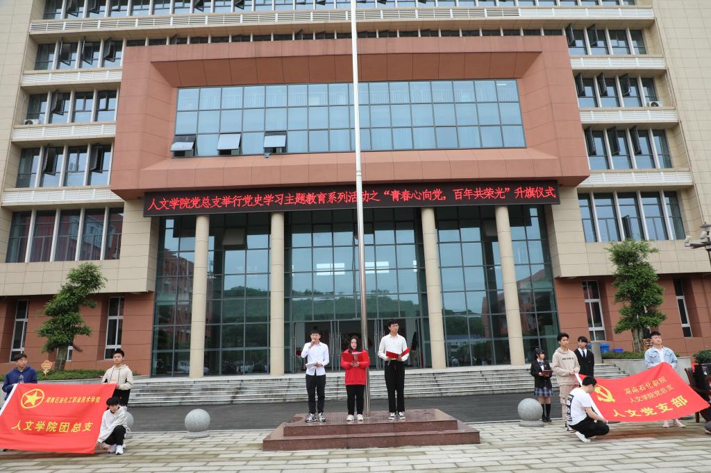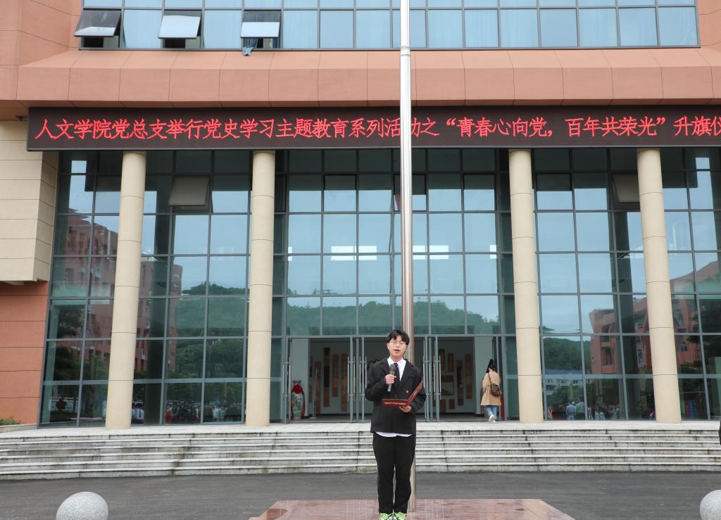 4月19日,Beat365中文官方网站人文学院组织全体师生在学校的思源广场举行了党史学习主题教育系列活动之“青春心向党,百年共荣光”主题升旗仪式。