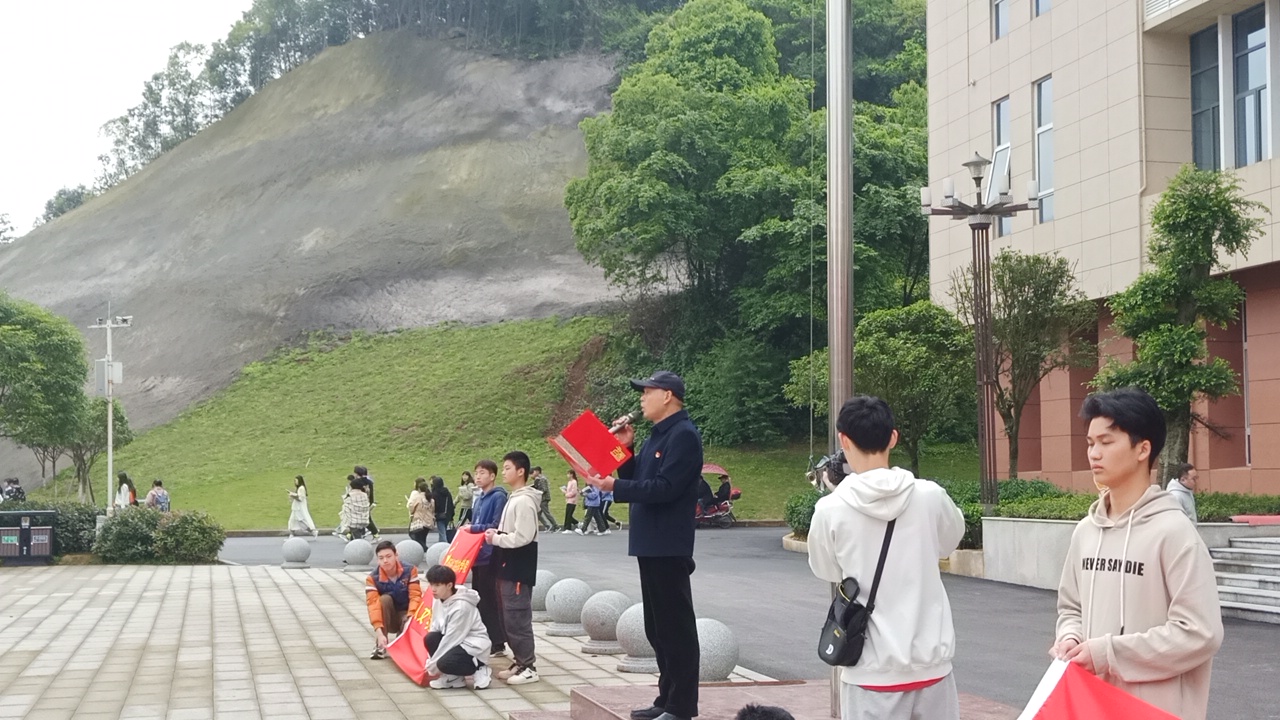 升旗仪式上人文学院党总支书记对全院学生提出了明确要求:全体学生要在今后的学习和生活中,知史爱党,知史爱国,明辨是非,锤炼品德,追求高尚情趣,遵守法纪校规,以优异成绩向中国共产党百年华诞献礼。