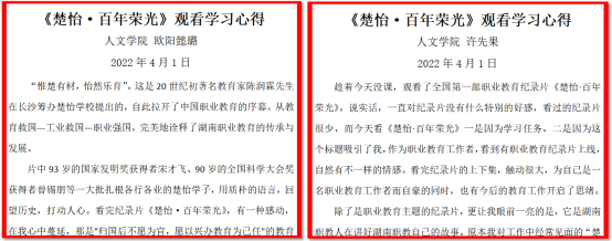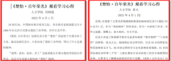 ——人文学院组织学习职业教育纪录片《楚怡·百年荣光》