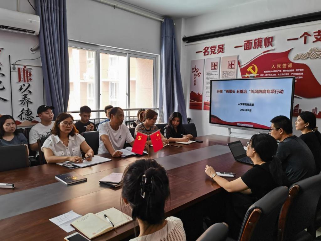 (通讯员:汤勇)8月29日在德远楼402室组织人文学院教职工认真学习了《印发<关于开展"两带头五整治"纠风防腐专项行动工作实施方案>的通知》、《关于开展"两带头五整治"纠风防腐专项行动工作实施方案》文件精神。