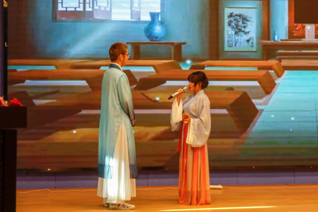 比赛过程中还穿插了历史短剧的演绎。同学们化作古代士子,用表演向先贤致敬。生动有趣的现场短剧不仅给紧张的比赛带来了轻松的氛围,也增添了几分古风古韵。