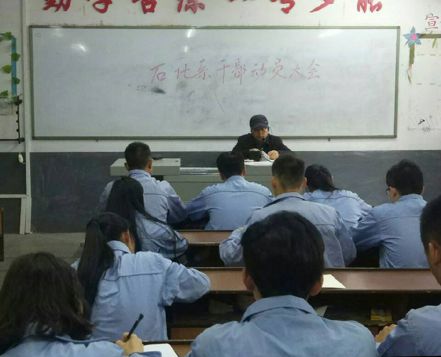 2017年10月11日,“石化技术工程系学生行为规范教育暨学习叶剑芝干部动员大会”在2-103教室举行,此次会议由刘顺清书记主持,系属全体学生干部参加。