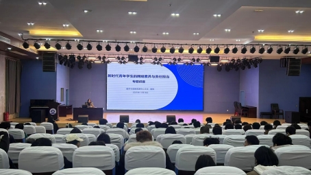 本网讯 为提升学生在网络空间的适应力、辨别力与创造力,共同营造清朗的网络环境,11月18日,图书与信息资源中心在学术报告厅举办“新时代青年学生网络素养与责任担当” 专题讲座。本次讲座由图书与信息资源中心主任熊伟主讲,数百名师生到场聆听。