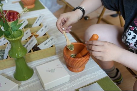 活动以“非遗文化解码”为核心脉络,开篇通过文化讲解环节,带领教职工追溯《离骚》“纫秋兰以为佩”的千年习俗,解析香囊从战国祛秽饰物到汉代礼仪信物的文化演变;同时体验蓝晒艺术独特的光影美学和岳州窑陶瓷工艺中蕴含的宋代美学精神。在手工创作环节,教职工们执起感光液涂刷于宣纸,将现场采集的树叶与花朵通过构图覆于其上,在紫外线下完成显影,形成充满化学诗意的蓝晒影像;其后教职工选择心仪的香囊,将艾草、佩兰等中药材研磨入囊,在香料调配中复现古人“闻香防病”的智慧,还以流苏、刺绣为香囊增添个性设计;陶艺则以黄砂釉、青蓝窑等传统釉色为媒,通过拉坯塑形感受泥土与火焰交织的非遗技艺密码。